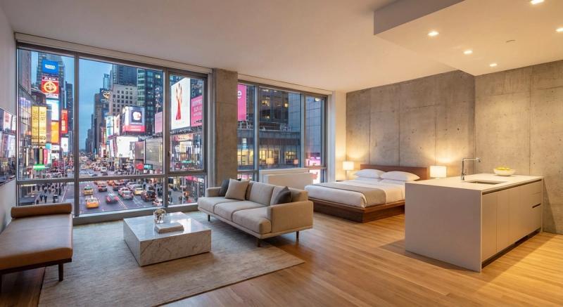 Experience the heart of NYC in this modern studio apartment located in the iconic Times Square area. Perfect for solo travelers or couples, this stylishly furnished space features a comfortable queen bed, smart TV, high-speed WiFi, and a kitchenette. Walk to Broadway theaters, world-class restaurants, and major attractions. The building has 24/7 doorman service and is near multiple subway lines.